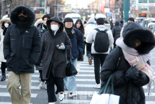[이데일리 김태형 기자] 올겨울 가장 추운날씨를 보인 26일 서울 광화문네거리에서 시민들이 출근길 이동을 하고 있다.