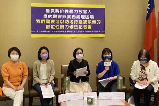 2022년 4월 대만 여성구호기금회와 사법개혁재단이 디지털 성폭력에 대한 입법 개혁을 촉구하는 기자회견을 열고 있다. 여성구호기금회 제공 |