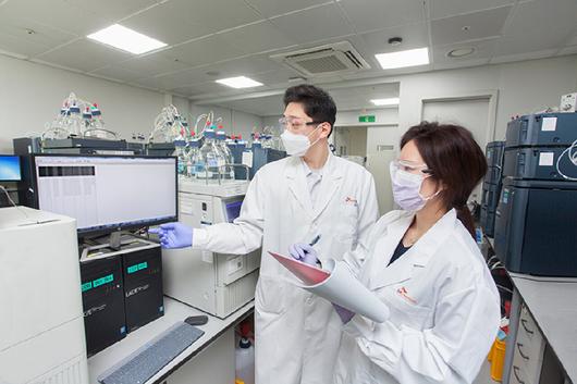 SK케미칼 연구진이 신약 연구를 하고 있는 모습. [사진=SK케미칼 제공] |