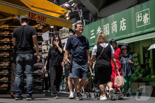 일본 도쿄 우에노의 한 상점가 앞을 행인들이 지나다니고 있다. 2024.6.20 ⓒ AFP=뉴스1 ⓒ News1 강민경 기자 |