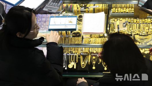 [서울=뉴시스] 김혜진 기자 = 미국과 베네수엘라의 군사적 긴장이 고조되면서 국제 금값과 은값이 최고치를 경신한 23일 서울 시내 한 금은방에서 시민들이 금과 은 제품을 구매하고 있다. 2025.12.23. jini@newsis.com |