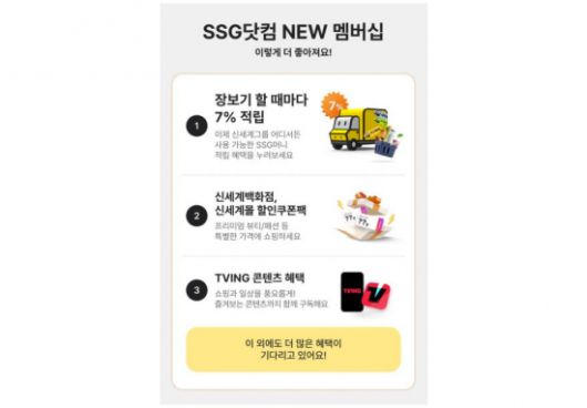 SSG닷컴이 내년 1월 장보기 7% 적립과 티빙 온라인동영상서비스(OTT)를 핵심 혜택으로 한 새 멤버십 '쓱세븐클럽'을 출시한다.