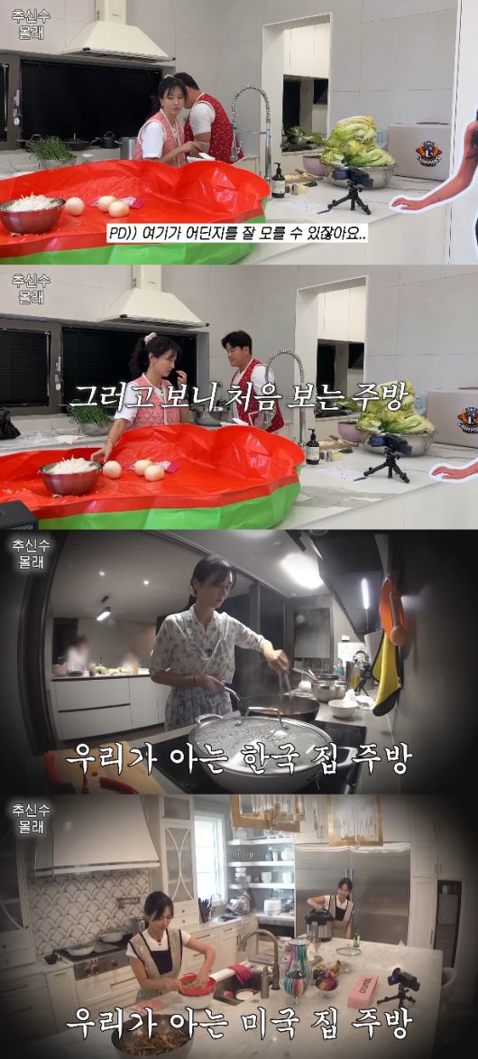 이날 하원미는 추신수와 함께 김장을 하기 위해 카메라 앞에 나섰다. 본격적인 김장에 들어가기 전, PD는 "사람들이 여기가 어딘지를 잘 모를 수 있다"며 기존 한국 집, 미국 집 주방과 다른 새로운 풍경의 주방 모습을 언급했따.