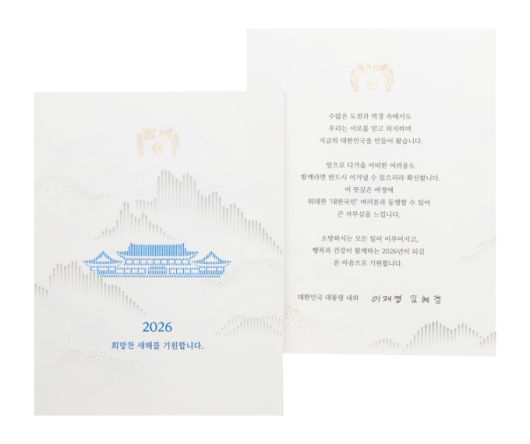 이 대통령은 26일 공개된 신년 연하장에서 "수많은 도전과 역경 속에서도 우리는 서로를 믿고 의지하며 지금의 대한민국을 만들어 왔다"며 "앞으로 다가올 어떠한 어려움도 함께라면 반드시 이겨낼 수 있으리라 확신한다"고 전했다.
