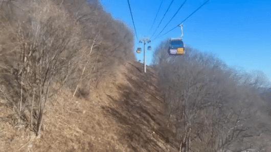 오늘(26일) 오전 고장이 나 멈춘 모나용평리조트 케이블카〈영상=시청자〉 |