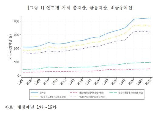 연도별 가계 총자산, 금융자산, 비금융자산 [자료=한국경제연구원] |
