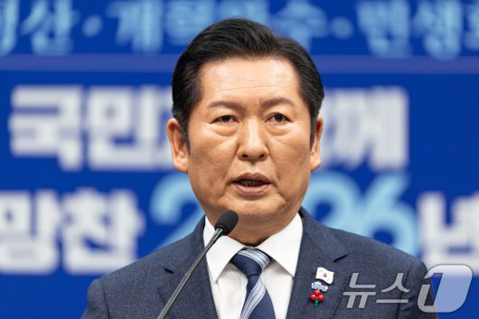 (서울=뉴스1) 이승배 기자 = 정청래 더불어민주당 대표가 26일 서울 여의도 국회에서 취임 후 열린 첫 공식 기자회견에서 발언하고 있다. 2025.12.26/뉴스1