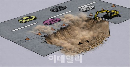 도 3차선 도로 중 1개 차로를 4미터 깊이로 굴착하여 하수관로를 설치하는 공사를 진행하던 중, 굴착 사면부가 무너지면서 노동자 2명이 토사에 매몰되는 사고(사망1, 부상1)가 발생했다. |