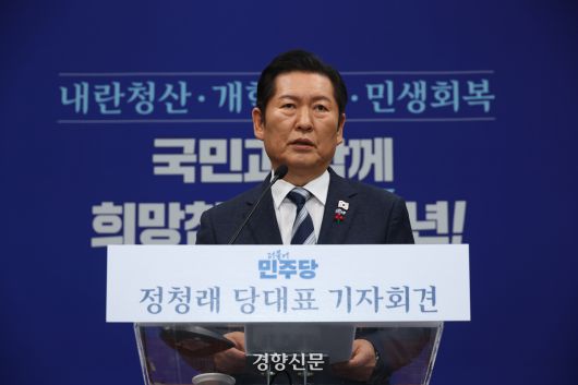정청래 더불어민주당 대표가 26일 취임 첫 기자회견에서 “당 한반도평화신전략위원회는 정세현·문정인·이재정 등 한반도 평화 문제에 가장 최고의 전문가들로 구성될 것”이라고 말했다.