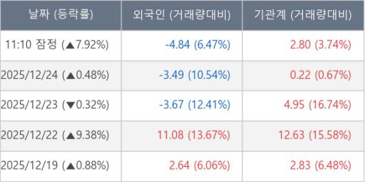 ※ 사모펀드 등 일부 기관의 순매매량은 표시되지 않음