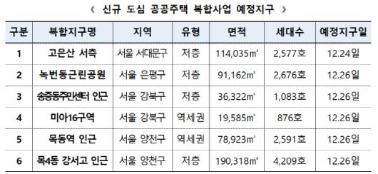 [이데일리 최정희 기자] 한국토지주택공사(LH)는 서울 목동역 등 총 6곳, 1만 4012가구가 도심 공공주택 복합사업 예정지구로 지정 공고됐다고 26일 밝혔다.
