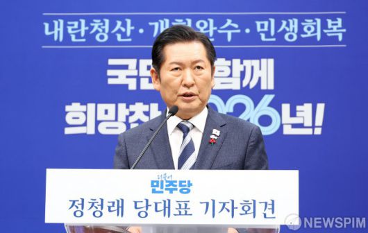 [서울=뉴스핌] 정일구 기자 = 정청래 더불어민주당 대표가 26일 오전 서울 여의도 국회에서 열린 기자회견에서 발언을 하고 있다. 2025.12.26 mironj19@newspim.com