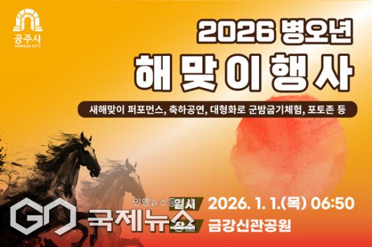 (충남=국제뉴스) 박의규 기자 = 공주시(시장 최원철)는 2026년 병오년을 맞아 시민의 건강과 행복을 기원하고 희망찬 새해의 출발을 다짐하는 '2026년 병오년 해맞이 행사'를 1월 1일 금강신관공원에서 개최할 계획이라고 밝혔다.