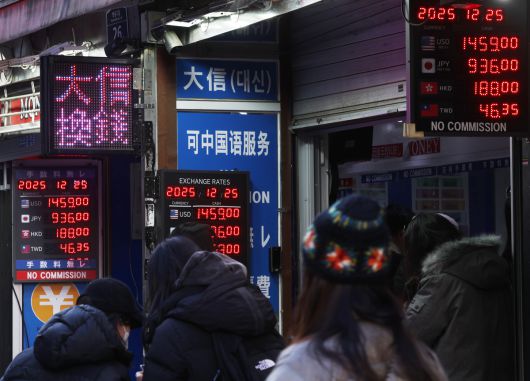 지난 25일 명동 환전소 전광판에 환율 정보가 표시돼 있다. 연합뉴스 |