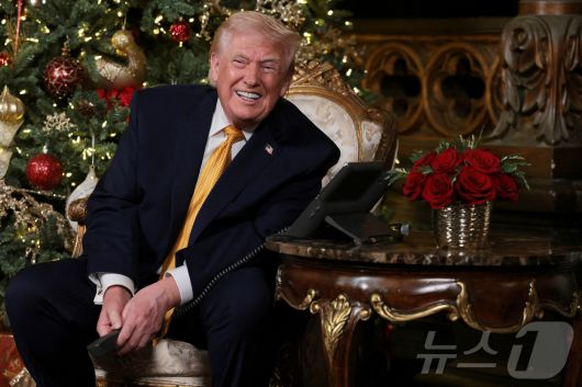 도널드 트럼프 미국 대통령이 24일(현지시간) 플로리다주 마러라고 리조트에서 북미항공우주방위사령부(NORAD)의 '산타 추적' 전화 행사에 참여해 어린이들과 전화 통화를 하고 있다. ⓒ 로이터=뉴스1 ⓒ News1 강민경 기자 |