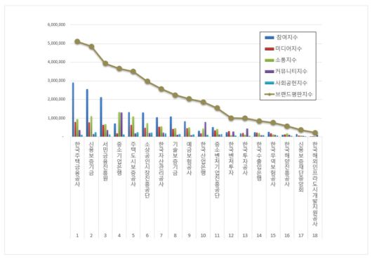 브랜드에 대한 평판은 브랜드에 대한 소비자들의 활동 빅데이터를 참여가치, 소통가치, 소셜가치, 시장가치, 재무가치로 나눠 분석한다. 금융 공공기관 브랜드평판지수는 참여지수, 미디어지수, 소통지수, 커뮤니티지수, 사회공헌지수로 산출했다.