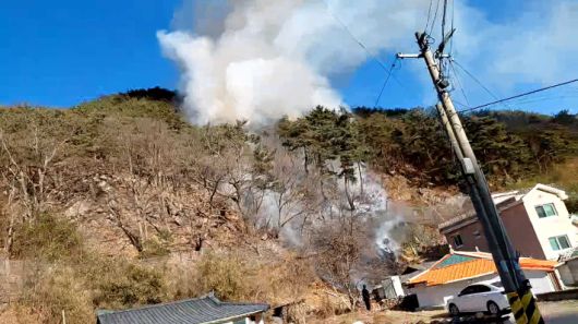 26일 오전 10시 33분쯤 강원 강릉시 강동면 심곡리 한 야산에서 불이 나 당국이 진화에 나섰다.