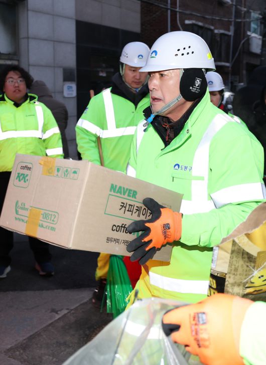 국민의힘 장동혁 대표가 26일 서울 도봉구 일대에서 생활폐기물 상차와 가로청소 봉사활동을 하고 있다. 〈출처=연합뉴스〉 |