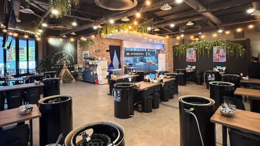솥탐은 드럼통 위 솥뚜껑에서 전골을 끓여내는 독창적인 조리 방식을 적용한 전골 전문 브랜드로, 도심에서도 캠핑을 즐기는 듯한 이색적인 식사 경험을 제공하는 것이 특징이다. 매장 인테리어 역시 캠핑 콘셉트를 반영해, 식사 공간 자체가 하나의 콘텐츠로 기능하도록 설계됐다.