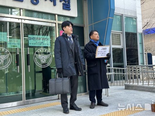 [서울=뉴시스]손효민 인턴기자=사법정의 바로세우기 시민행동(사세행)이 26일 오전 서울 종로구 서울경찰청 민원실에서 대한항공으로부터 숙박권을 제공받고 가족 공항 의전을 요청했다는 의혹을 받는 김병기 더불어민주당 원내대표를 뇌물수수 및 청탁금지법 위반 혐의로 경찰에 고발하고 있다. 2025.12.26. photo@newsis.com |