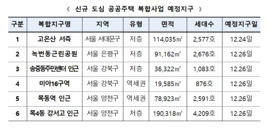 한국토지주택공사(LH)는 서울 목동역 등 총 6곳, 1만4012세대가 도심 공공주택 복합사업 예정지구로 지정 공고(주민 등의 의견청취 공람공고) 되었다고 26일 밝혔다.
