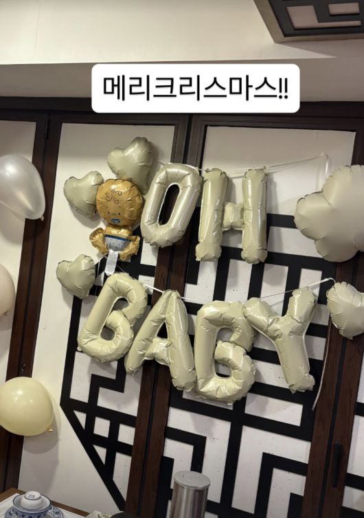 이시언은 지난 25일 인스타그램 스토리에 "메리 크리스마스"라는 글과 함께 "오 베이비"라고 적힌 풍선을 올렸다. 남자 아이 풍선으로 성별도 암시했다.