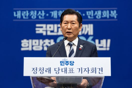 2차 종합 특검을 ‘신년 1호 법안’으로 신속하게 추진하겠다는 구상도 밝혔다. 정 대표는 “내란 청산과 개혁 완수를 향한 발걸음은 한 발짝도 물러설 수 없고, 한시도 쉴 수 없다”며 “2차 종합 특검으로 노상원 수첩, 여인형 메모, 채해병 사건 구명 로비 의혹 등을 포함해 12·3 비상계엄 사태의 전말과 윤석열 정권의 모든 국정농단을 낱낱이 밝혀야 한다”고 말했다.