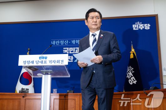 (서울=뉴스1) 이승배 기자 = 정청래 더불어민주당 대표가 26일 서울 여의도 국회에서 취임 후 열린 첫 공식 기자회견을 마치고 자리로 향하고 있다. 2025.12.26/뉴스1photolee@news1.krCopyright ⓒ 뉴스1. All rights reserved. 무단 전재 및 재배포, AI학습 이용 금지.