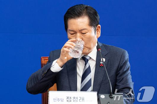 (서울=뉴스1) 이승배 기자 = 정청래 더불어민주당 대표가 26일 서울 여의도 국회에서 취임 후 열린 첫 공식 기자회견에서 물을 마시고 있다. 2025.12.26/뉴스1photolee@news1.krCopyright ⓒ 뉴스1. All rights reserved. 무단 전재 및 재배포, AI학습 이용 금지.