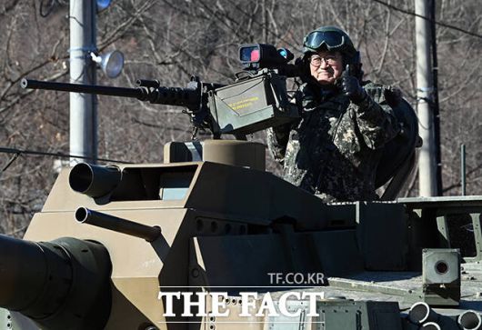 [더팩트ㅣ배정한 기자] 우원식국회의장이 26일 오전 경기 양평군 옥천면 제11기동사단 108기계화보병대대를 방문해 K2전차를 탑승하고 있다.