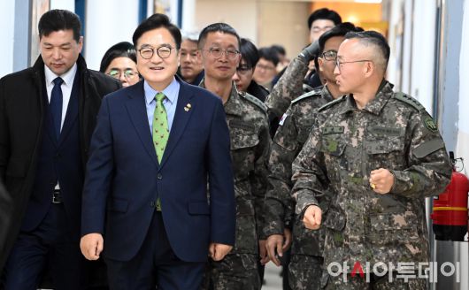 우원식 국회의장이 26일 오전 경기 양평군 옥천면 제11기동사단 108기계화보병대대를 방문, 부대내 시설을 둘러보고 있다. /국회사진기자단