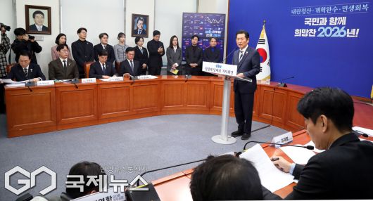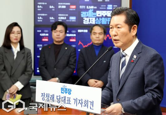 (서울=국제뉴스) 정청래 더불어민주당 대표가 26일 오전 서울 여의도 국회에서 기자회견을 하고 있다./사진=이용우 기자