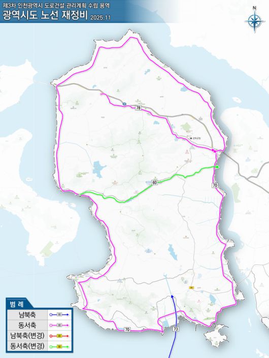 광역시도 60호선이 개설될 경우 강화 중심부를 관통하는 동서축 간선도로를 확보하게 된다. 현재 군의 동서축 도로 기능은 국도 48호선이 담당하고 있지만 노선이 북단에 편중돼 있어 강화 전역을 아우르는 간선 기능 수행에는 한계가 있다는 평가다.