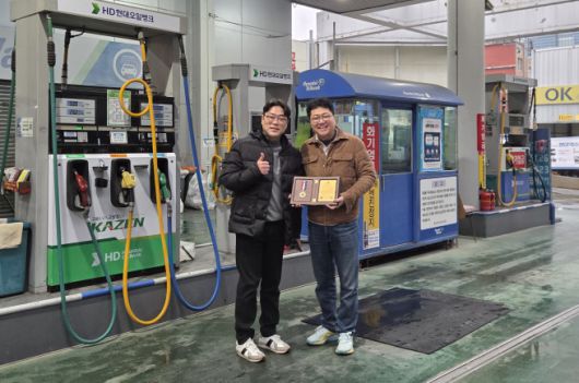 부산시의회 반선호의원과 황성문대표가 금융단지주유소에서 표창장을 수여받고 있다. |