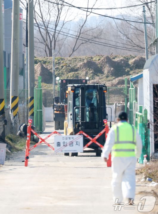 (평택=뉴스1) 김영운 기자 = 26일 경기 평택시의 한 산란계 농장에서 고병원성 조류인플루엔자(AI)가 발생해 방역당국이 통제 및 방역 작업을 하고 있다. 2025.12.26/뉴스1kkyu6103@news1.krCopyright ⓒ 뉴스1. All rights reserved. 무단 전재 및 재배포, AI학습 이용 금지.