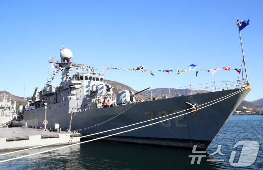 (창원=뉴스1) 윤일지 기자 = 26일 경남 창원 진해구 진해 군항에서 국산 초계함 광명함(PCC·1000톤급) 전역식이 열리고 있다. 광명함은 포항급 22번째 초계함으로, 1989년 코리아타코마 조선소에서 건조 후 1990년 7월 취역해 제5성분전단 배치를 시작으로 제1함대사령부, 제3함대사령부 등에서 해역 방어 업무를 수행해 왔다. 76㎜ 및 40㎜ 함포, 대함미사일, 경어뢰 등의 무장을 갖추고 있으며, 1998년 12월엔 전남 여수 앞바다로 침투한 북한 반잠수정을 7시간 추적 후 함포사격으로 격침하기도 했다. 이런 노하우에 기반해 2017년엔 해군 포술 최우수 전투함인 '탑건함'으로 선발됐다. 2025.12.26/뉴스1