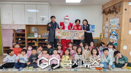 (의왕=국제뉴스) 이운길·손병욱 기자 = 의왕시 부곡동 지역사회보장협의체가 크리스마스를 맞아 지난 22일과 24일, 이틀간 관내 어린이집 7곳(숲이랑놀자, 오로나, 아이맘, 대우예원, 해늘, 자연숲, 참빛)을 방문해 나눔 행사를 추진했다.