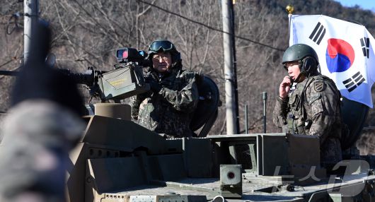 (서울=뉴스1) 국회사진기자단 = 우원식 국회의장이 26일 오전 경기 양평군 옥천면 제11기동사단 108기계화보병대대를 방문, K2 전차에 탑승해 부대내를 이동하고 있다. 2025.12.26/뉴스1