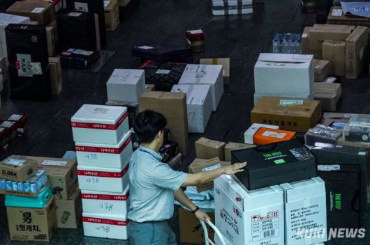 추석 연휴를 앞둔 지난 10월 서울 여의도 국회 의원회관 로비에서 국회 직원들이 택배 선물들을 찾아가고 있다. 유희태 기자 |