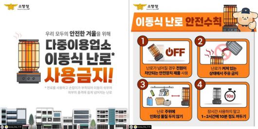 소방서에 따르면 이동식 난로는 구조적 특성상 쉽게 넘어질 수 있고, 주변 가연물과 접촉이나 과열로 화재로 이어질 가능성이 크다. 또한 환기가 원활하지 않은 실내에서 장시간 사용할 경우 일산화탄소 중독 사고 발생 우려도 있다.