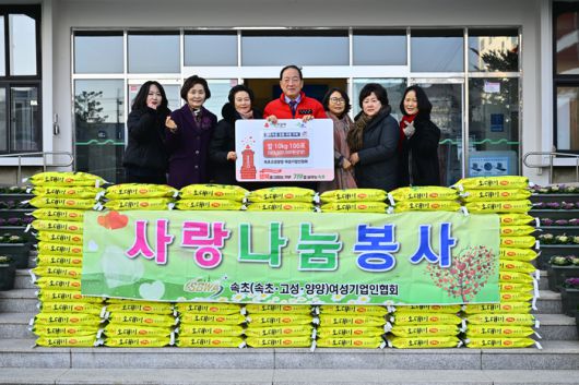 사진|속초시청 [스포츠서울ㅣ김기원기자]속초고성양양 여성기업인협회(회장 김정녀)는 12월 26일 속초시청을 방문해 관내 취약계층에게 전달될 총 330만 원 상당의 10kg들이 쌀 100포를 기탁했다.acdcok4021@sportsseoul.com [기사제보 news@sportsseoul.com] Copyright ⓒ 스포츠서울&sportsseoul.com
