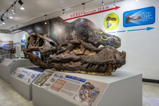 아울러 전시장 입구에 아시아의 티라노사우루스로 불리는 타르보사우루스의 전신 골격 복제 표본도 볼 수 있다.