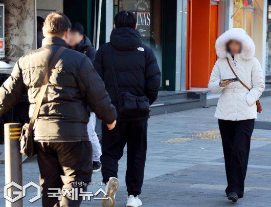 (서울=국제뉴스) 서울 아침 최저기온 영하 12도 등 전국에 한파가 찾아온 26일 오전 서울 여의도역부근에서 두꺼운 옷차림의 시민들이 출근길 발걸음을 옮기고 있다./사진=이용우 기자