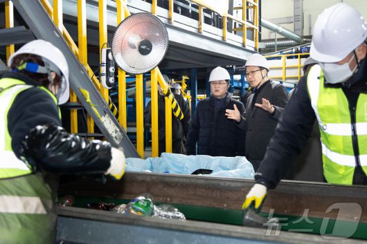 (서울=뉴스1) = 김성환 기후에너지환경부 장관이 26일 경기 화성시 소재 폐플라스틱 및 재활용 업체를 방문해 플라스틱 선별장을 둘러보고 있다. (기후에너지환경부 제공. 재판매 및 DB 금지) 2025.12.26/뉴스1urodoct2@news1.krCopyright ⓒ 뉴스1. All rights reserved. 무단 전재 및 재배포, AI학습 이용 금지.