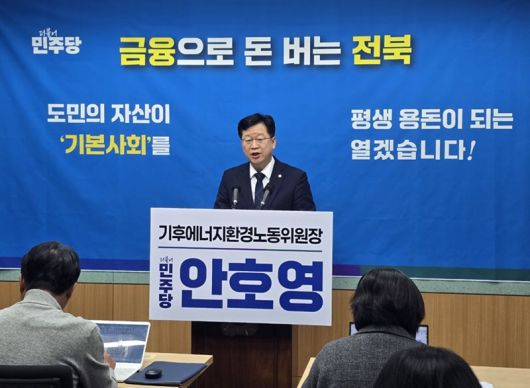 안호영 의원은 26일 전북특별자치도의회 브리핑룸에서 기자회견을 열고“전북의 햇빛과 바람, 땅에서 맺힌 성장의 결실을 더 이상 외부 자본에 빼앗기지 않겠다”며 “도민이 직접 주권자로 성장의 과실을 ‘기본 소득’으로 되돌려받는 금융 기반의 기본사회 전북을 만들겠다”며 정책 추진 배경을 설명했다.