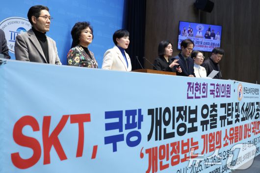 (서울=뉴스1) 신웅수 기자 = 전현희 더불어민주당 의원이 26일 서울 여의도 국회 소통관에서 쿠팡 개인정보 유출 규탄 기자회견을 하고 있다. 2025.12.26/뉴스1phonalist@news1.krCopyright ⓒ 뉴스1. All rights reserved. 무단 전재 및 재배포, AI학습 이용 금지.