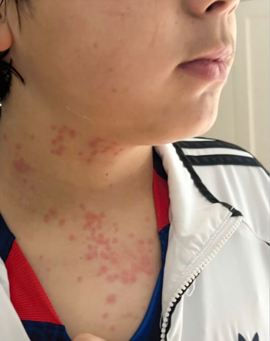 여객기에서 빈대에 물려 항공사를 상대로 20만달러 소송을 제기한 가족 중 빈대에 물린 자녀의 모습. 미국 엔비시(nbc) 누리집 갈무리 |