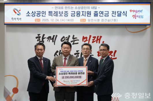 충남신용보증재단은 24일 당진시청에서 한국동서발전, 하나은행, 당진시와 함께 '당찬 발전자금 지원사업'을 위한 출연금 전달식을 개최했다.