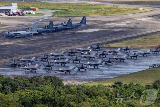 (세이바 로이터=뉴스1) 이정환 기자 = 미국 공군 F-35A, 미 해병대 F-35B, 그리고 미 공군 AC-130J 고스트라이더 건십이 25일(현지시간) 중남미 푸에르토리코 세이바의 옛 루즈벨트 로즈 해군기지 활주로에 주기돼 있다. 푸에르토리코의 이웃국가 베네수엘라는 최근 미국과 군사 긴장이 고조되고 있다. 2025.12.25. ⓒ 로이터=뉴스1
