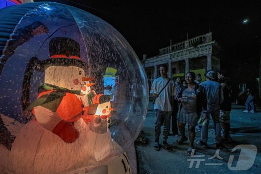 (하바나 AFP=뉴스1) 이정환 기자 = 25일(현지시간) 쿠바 하바나에서 일어난 정전 사태 중 주민들이 발전기를 돌려 산타클로스 풍선 장식에 불을 밝힌 집 주변에 모여 크리스마스를 축하하고 있다. 2025.12.25. ⓒ AFP=뉴스1 Copyright ⓒ 뉴스1. All rights reserved. 무단 전재 및 재배포, AI학습 이용 금지.